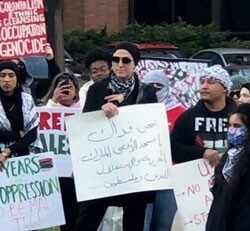 At one point the protesters were led in an Arabic chant Yasser Arafat used to promote suicide bombing during the second Intifada: